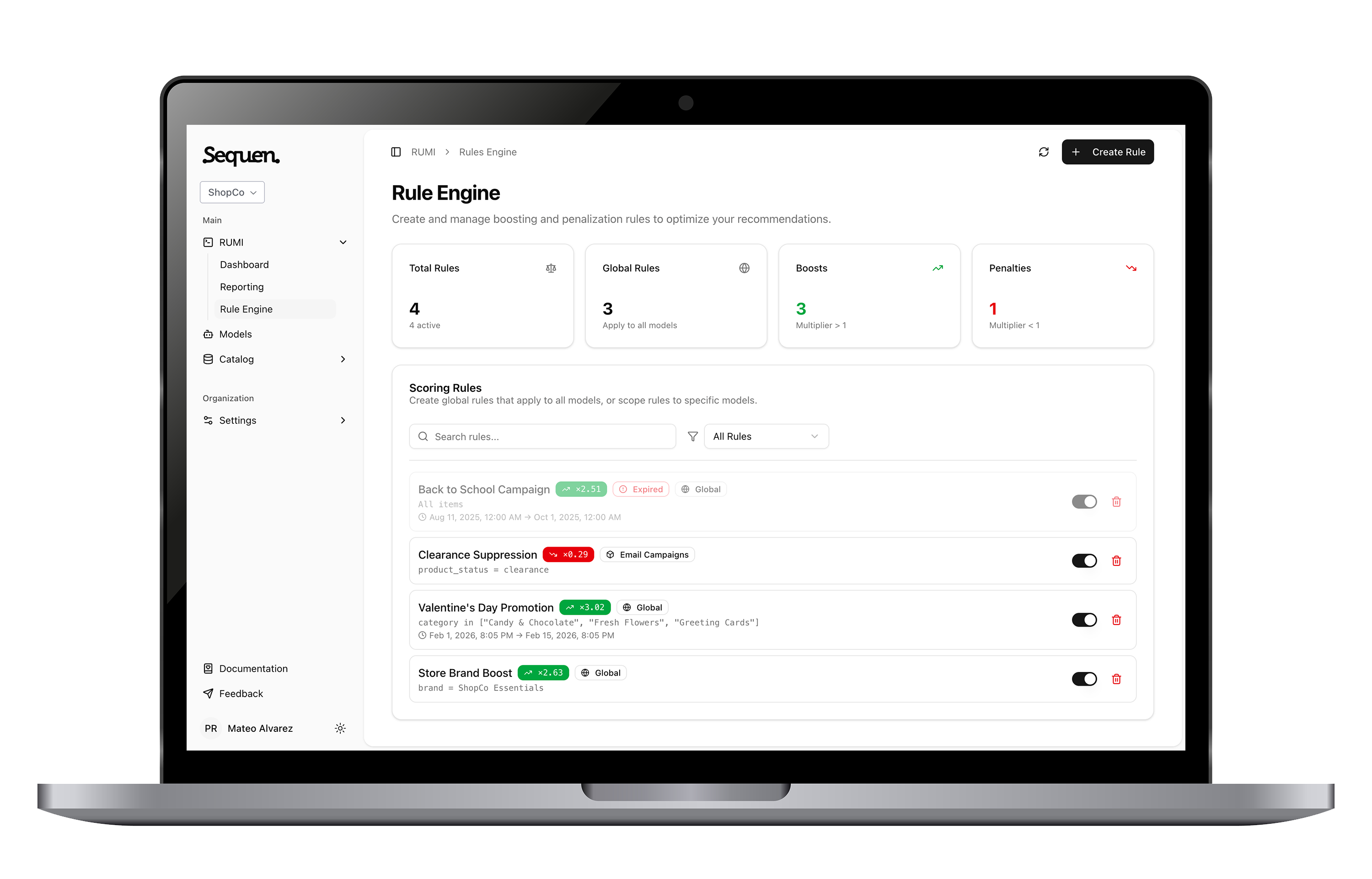 Sequen provides the consumer intelligence layer for a deeper understanding of each user to make better ranking decisions, learning from live in-session behavior to dynamically rerank and power user experiences in under 20ms @p99.